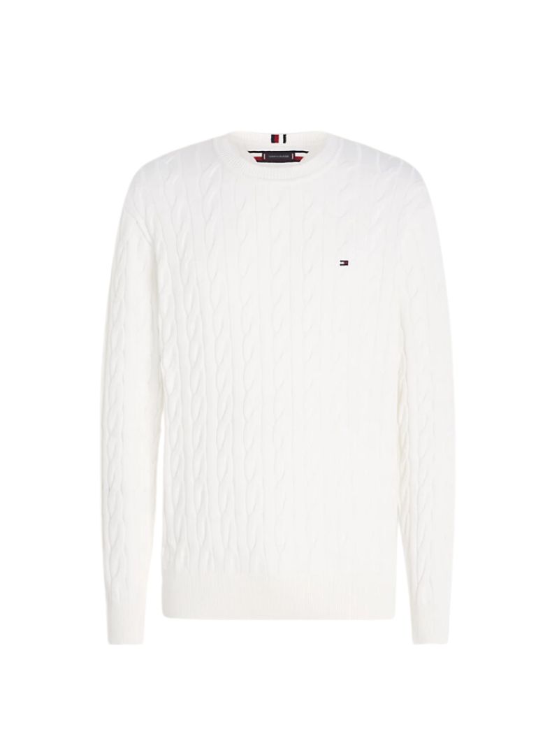Materiale: Maglione in Puro cotone biologicoLavorazione a maglia intrecciataGirocolloCollo, fondo e polsini a costeBranding Tommy HilfigerBandierina Tommy Hilfiger ricamata sul pettoRelaxed fitSpalle leggermente scese100% cotone biologico