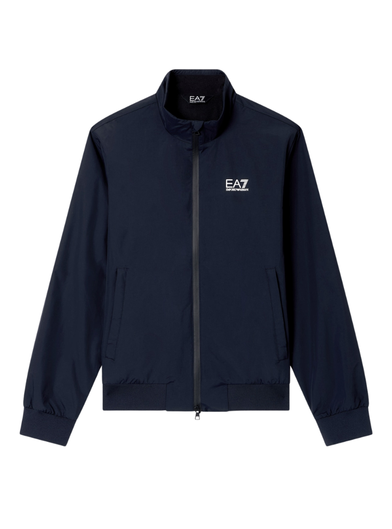 Materiale: Giubbino senza cappuccioChiusura con zip in nylonManiche lungheDue tasche lateraliLogo EA7 a contrasto sul pettoTessuto: 100% poliammide riciclata