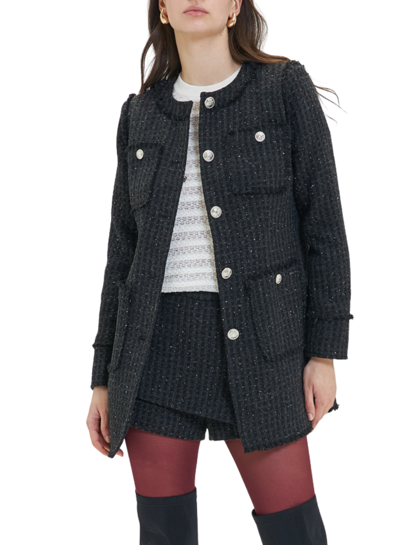 Materiale: Cappotto in tweed di lana con texture classicaDesign strutturato a taglio drittoChiusura frontale con bottoni metallici decorativiCollo rotondo senza revers Tasche a toppa con patta sul petto e ai lati0%POLYESTER, 20%WOOL