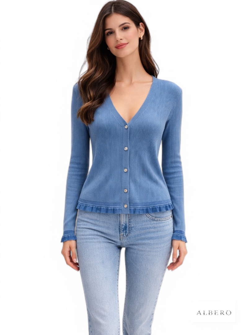 Materiale: Cardigan in maglia leggeraChiusura con bottoniMini rouches sul fondoVestibilità regolare