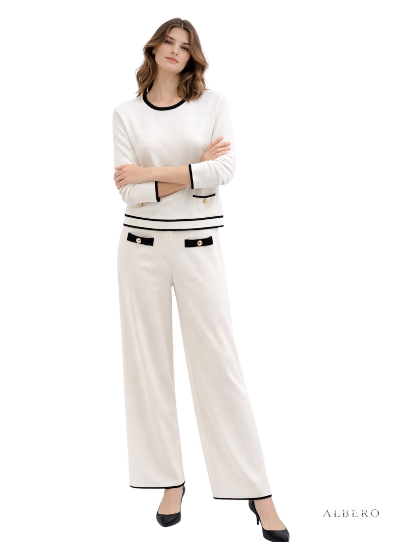Materiale: Pantalone in magliaModello morbidoBordi a contrastoBottoni decorativi