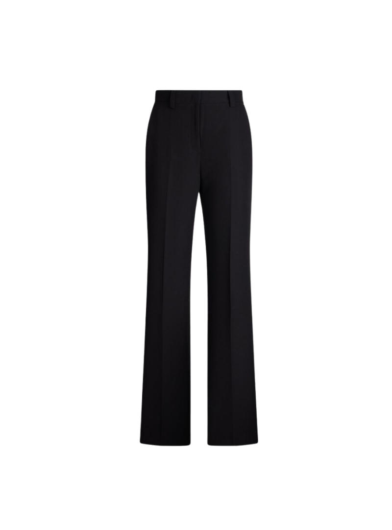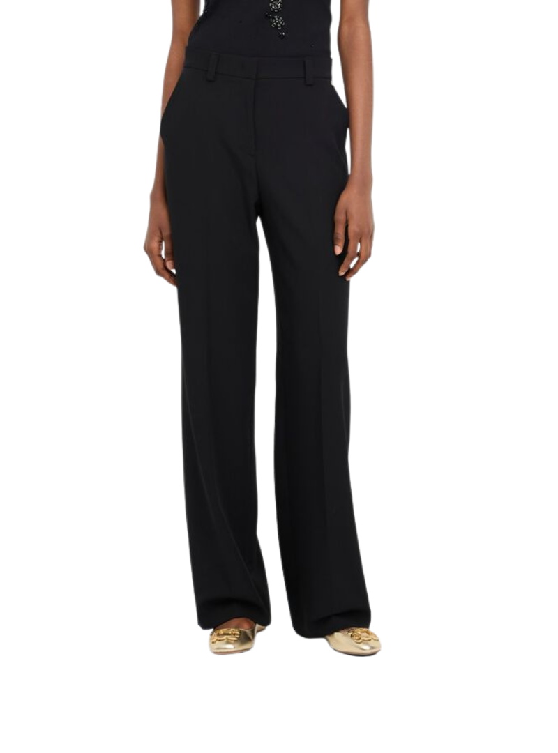Materiale: Pantaloni palazzo neri in tessuto tecnico stretchVita altaComode tascheTasca a filetto sul dietroChiusura con zip nascosta91% Poliestere, 9% Elastan