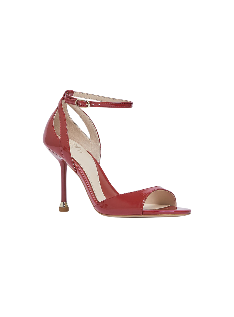 Materiale: Sandali con tomaia in verniceCut-outCinturino alla cavigliaSoletta con stampa a cuore Suola personalizzata bimateriale con stampa My Liu Jo EssentialTacco a spillo con iconico dettaglio metallizzatoAltezza tacco: 9,5 cm