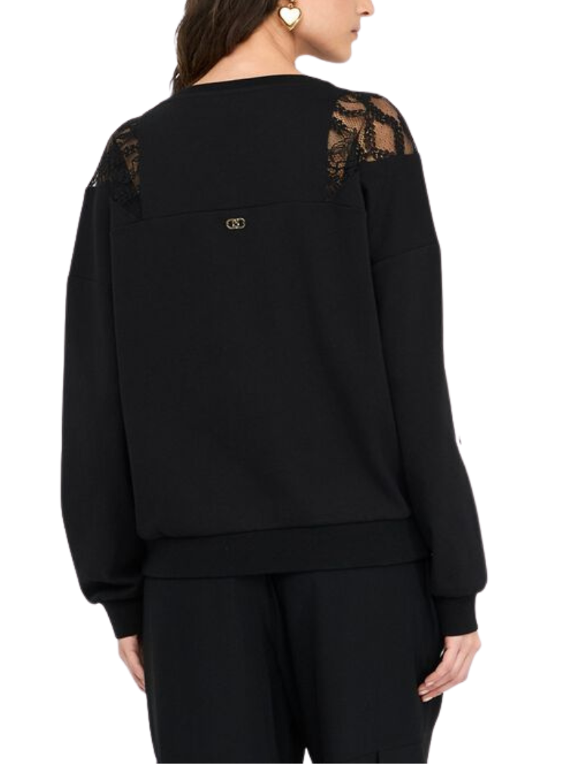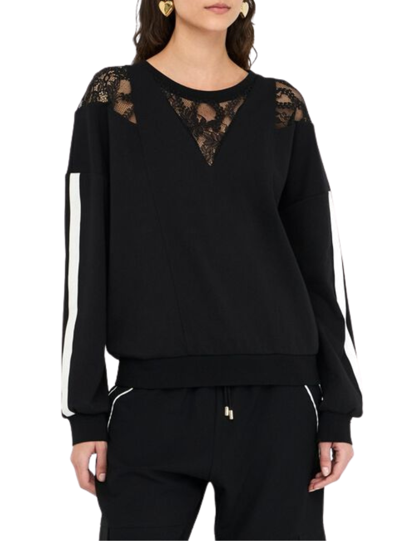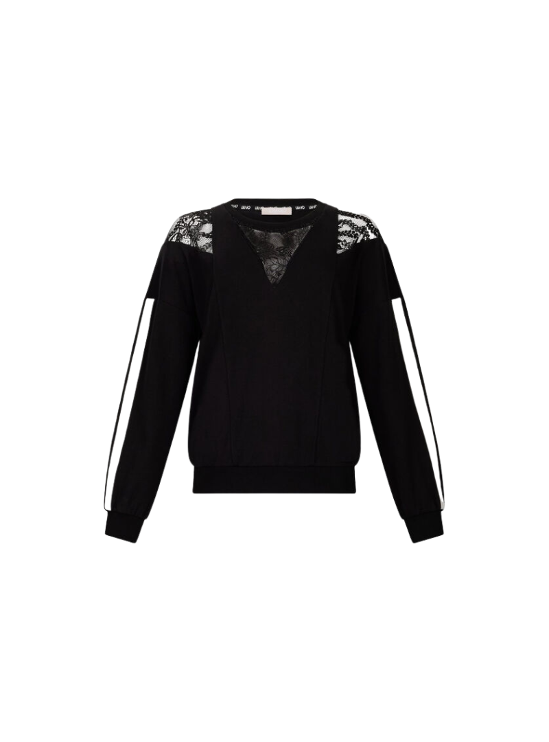 Materiale: Felpa in interlock di cotone stretchBande laterali a contrastoDettagli in pizzoTaglio girocolloLogo in metallo sul retroTessuto principale: 95% Cotone, 5% Elastan