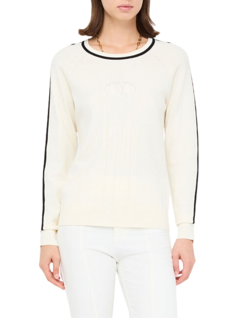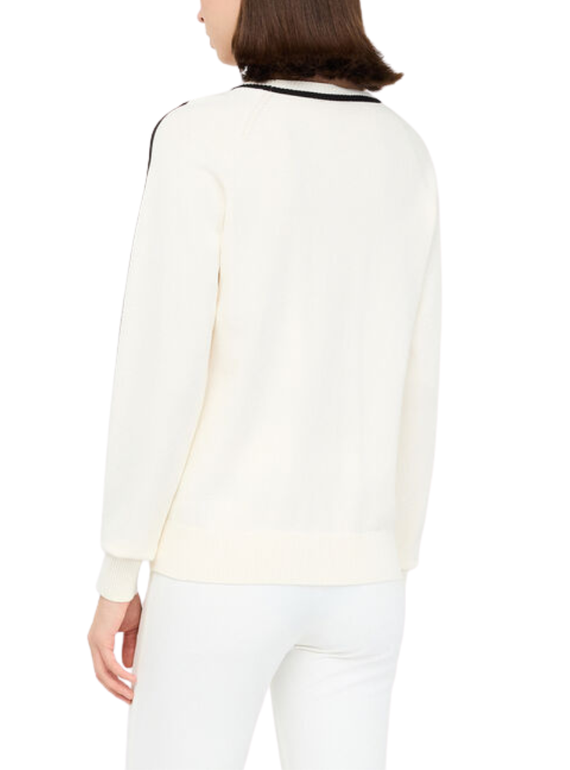 Materiale: Maglia in misto viscosaLogo monogram con strassDettagli a contrastoScollo rotondoManiche lunghe raglanBordi a costineTessuto principale: 62% Viscosa, 38% Poliestere