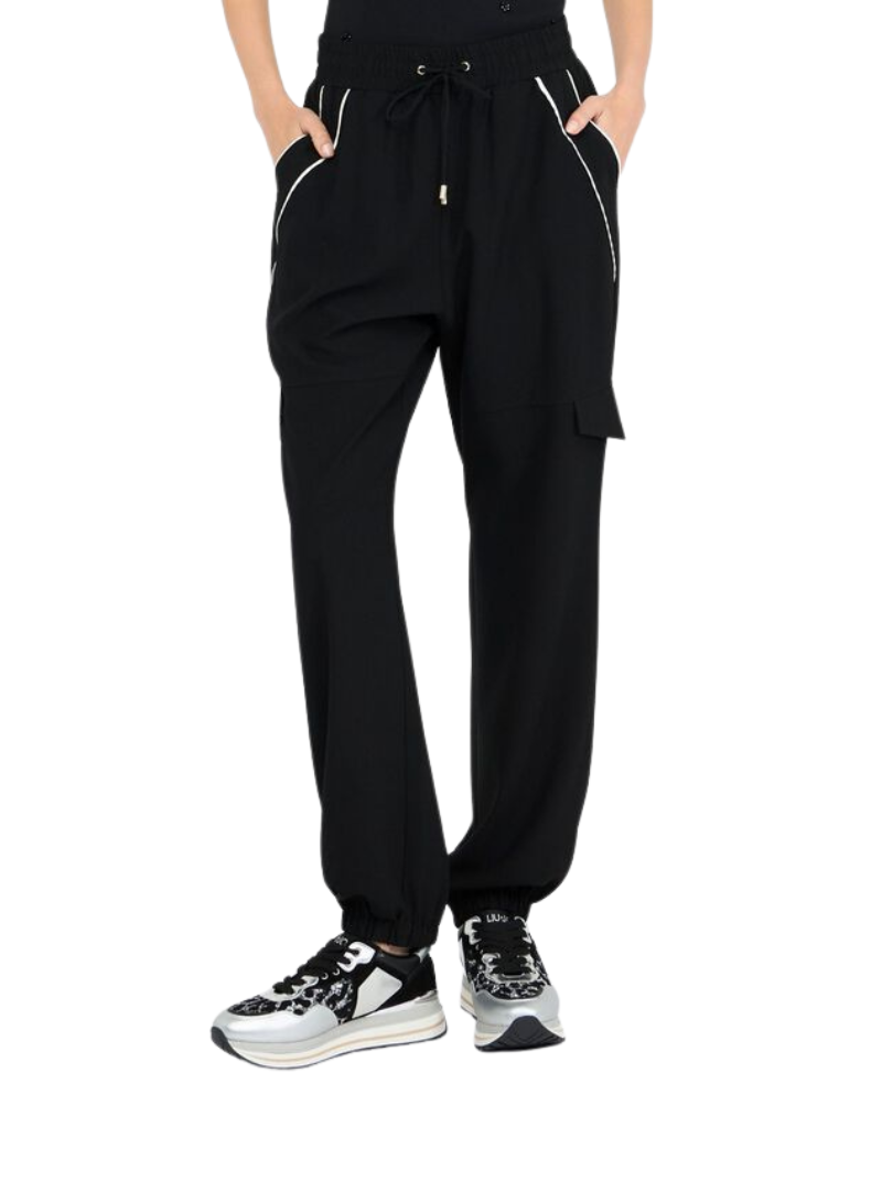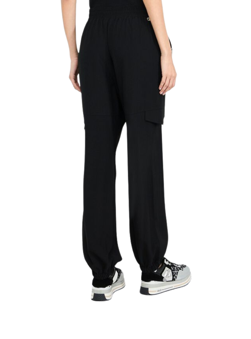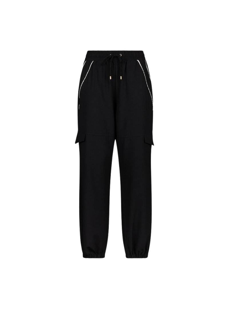 Materiale: Pantaloni jogging Realizzati in crêpe stretchCintone elastico con coulisse in vitaTasche sui fianchiMotivo a righeElastico alle caviglieTasche cargoTessuto principale: 91% Poliestere, 9% Elastan