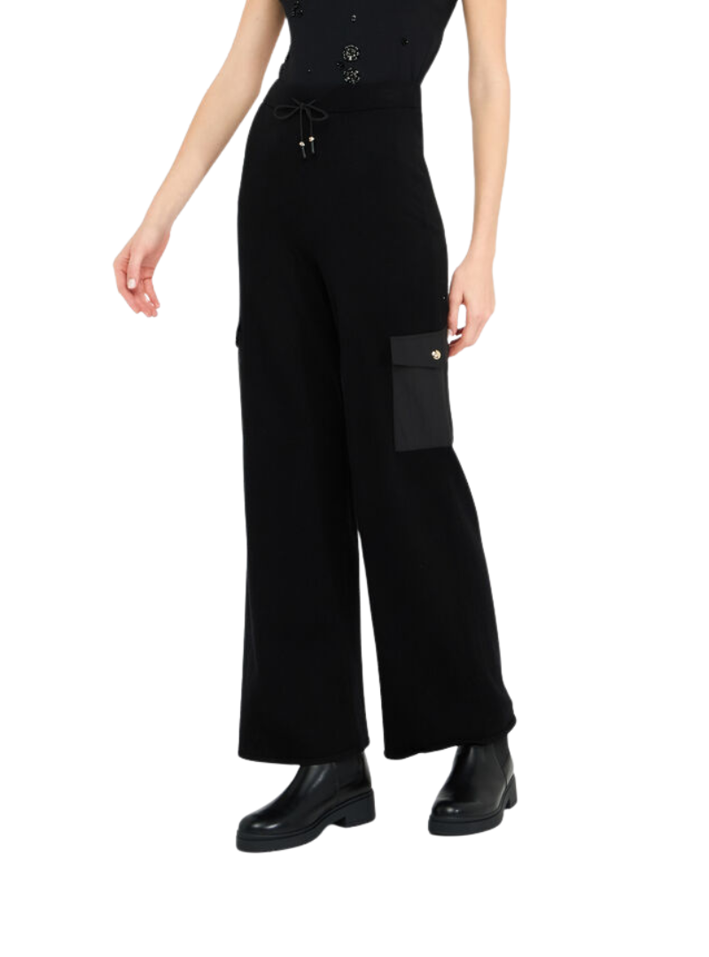 Materiale: Pantaloni joggingRealizzati in maglia di misto viscosaCintone elastico con coulisse in vitaTasche cargo in nylonLogo LJ in metallo sul retro52% Poliammide, 48% Viscosa