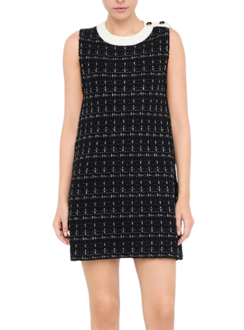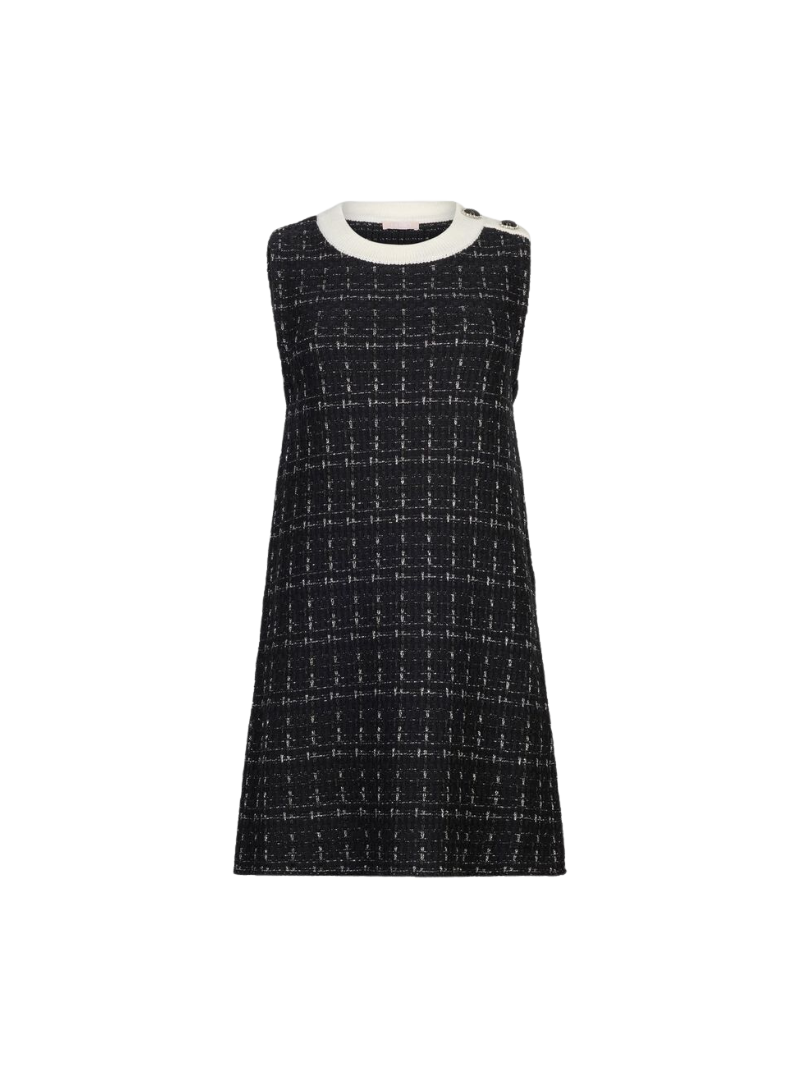 Materiale: Abito corto in magliaFilati in misto lana e cotoneInterventi in lurexGirocollo con profili in jerseyTessuto principale: 52% Cotone, 33% Acrilica, 15% Poliestere metallizzato