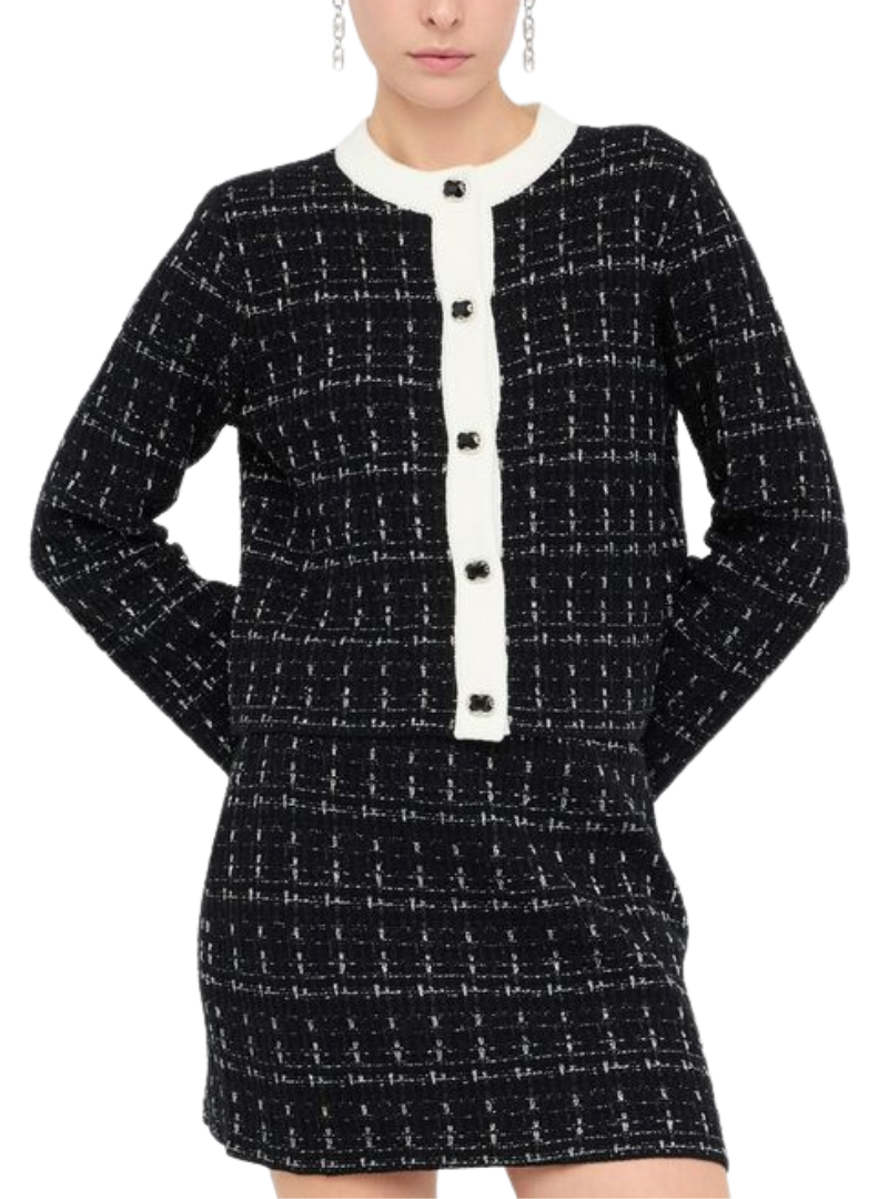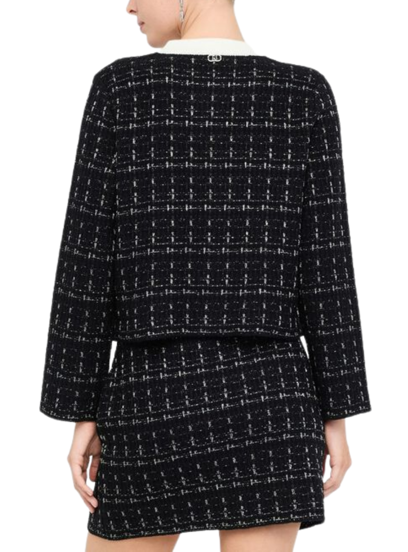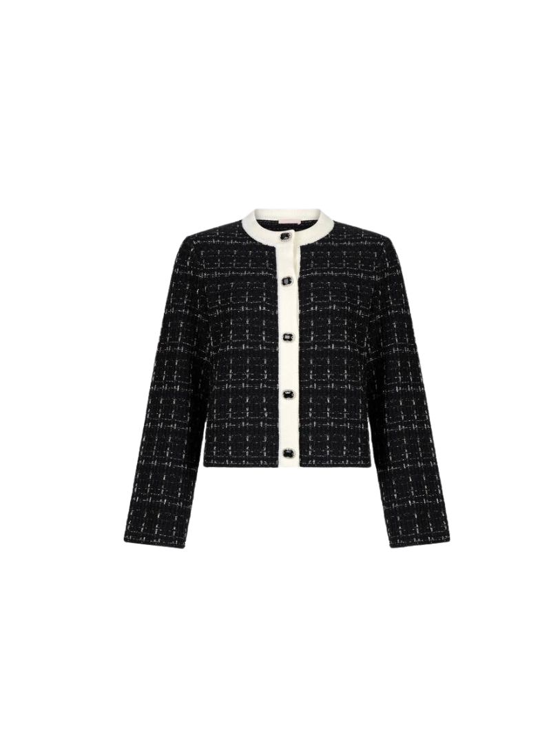 Materiale: Giacca in magliaFilati in misto lanaEffetto sparklingChiusura con bottoni gioielloTessuto principale: 52% Cotone, 33% Acrilica, 15% Poliestere metallizzato