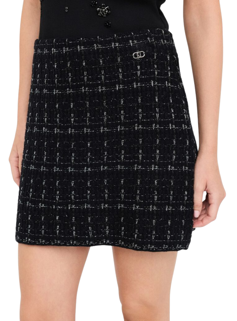 Materiale: Minigonna in magliaFilati in misto lana e cotoneInterventi in lurexChiusura con zip sul latoPiccolo logo monogram in metalloTessuto principale: 52% Cotone, 33% Acrilica, 15% Poliestere metallizzato