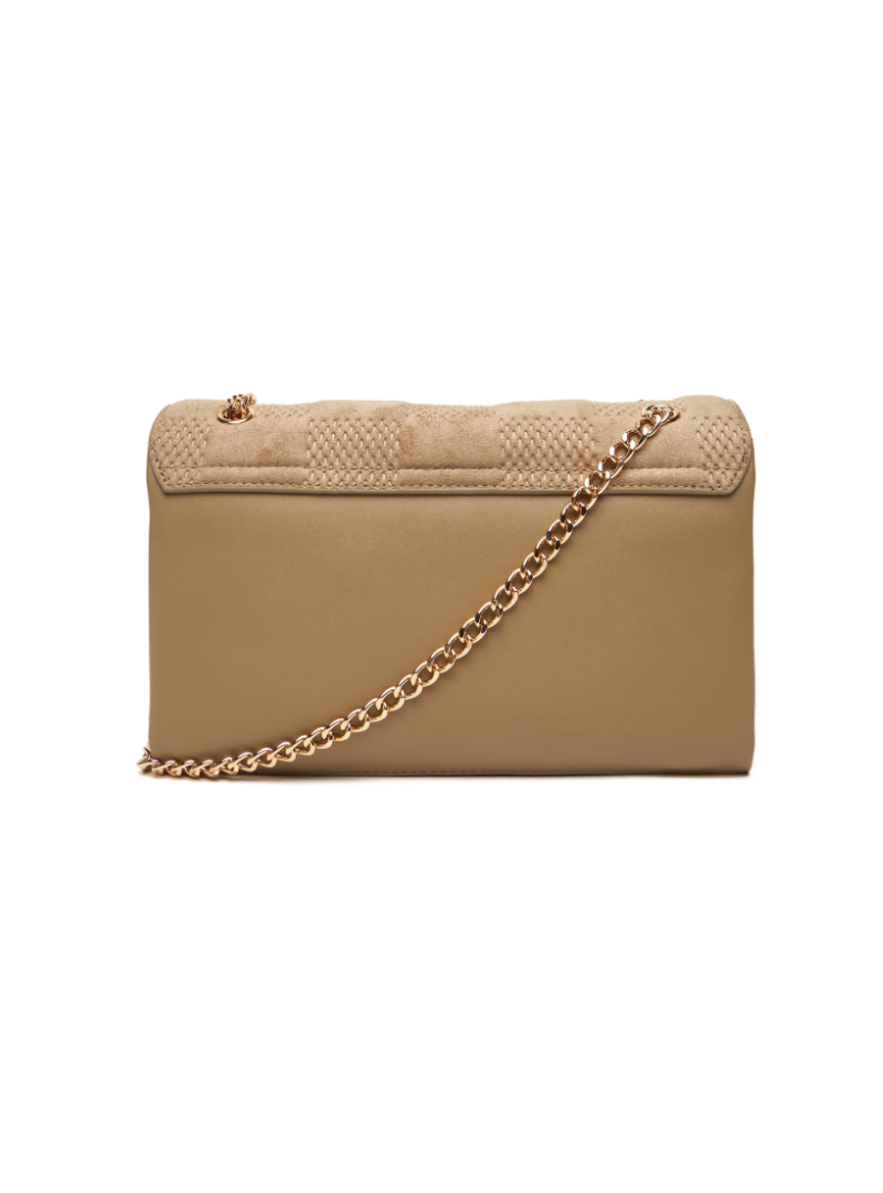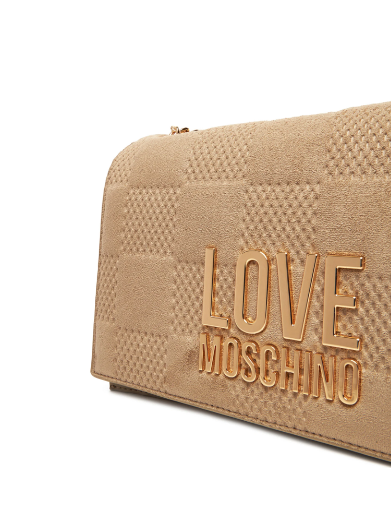 Materiale: Borsa a tracollaEffetto scamosciato sul davantiLogo lettering in metalloManico regolabile a spallaChiusura con bottone magnetico25X15X7 cm