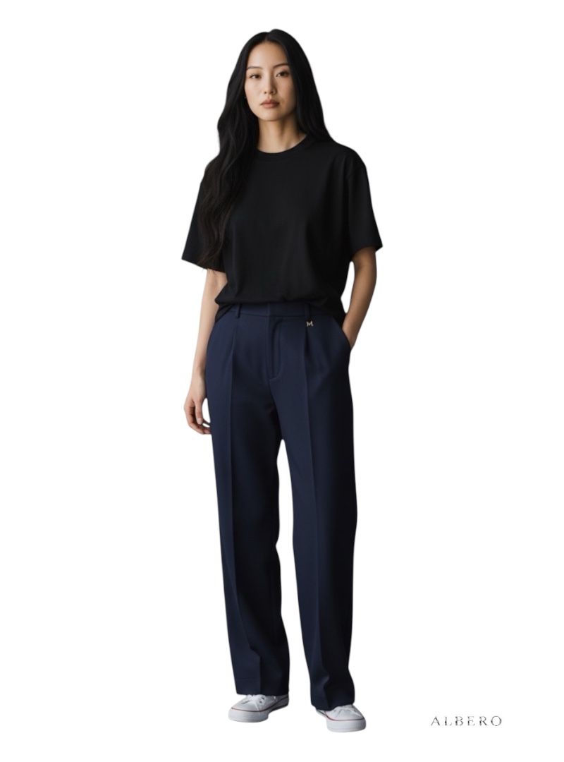 Materiale: Pantalone a palazzoChiusura zip e bottonePassanti in vitaVestibilita morbida