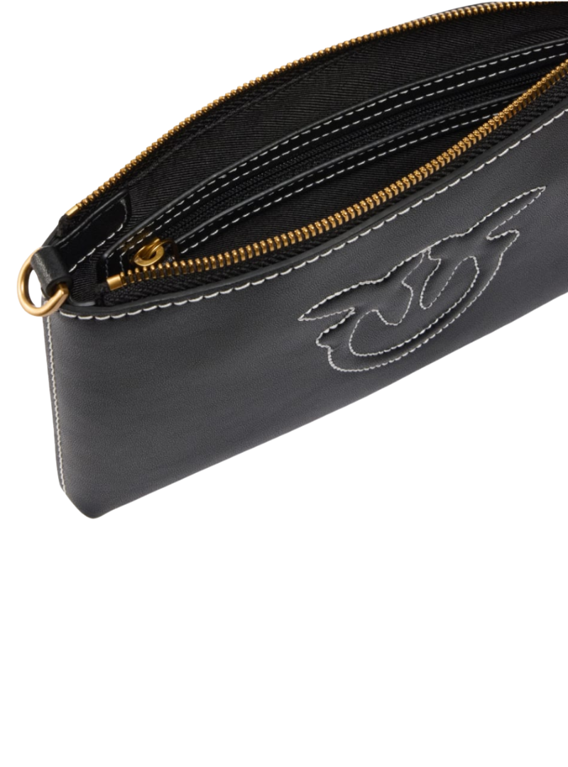 Materiale: Flat bag in morbida pelle mano seta Personalizzazione logo Love Birds con tecnica a rilievo e rifiniti con impunture in filoTracollina rimovibile e regolabile in pellePelle: PELLE DI VACCA 100%Misure: 12x3x20 cm