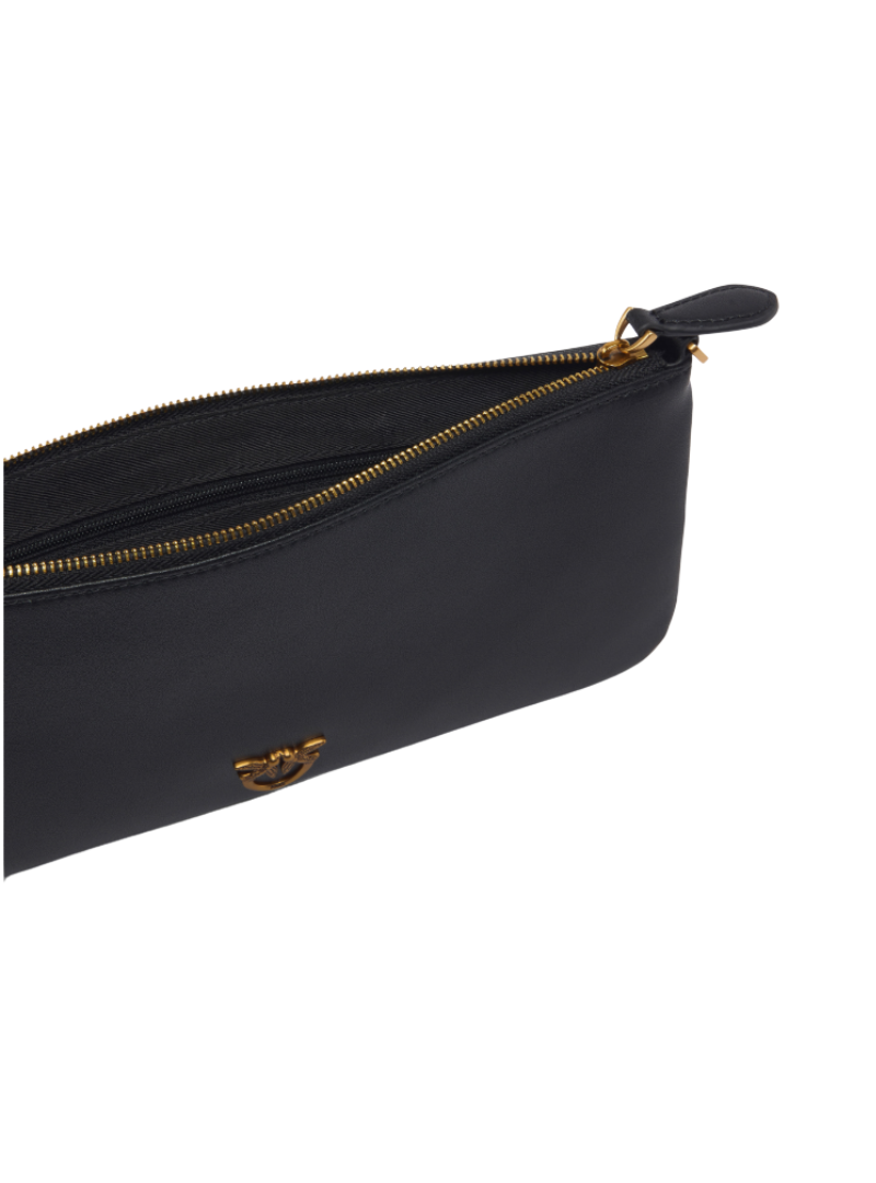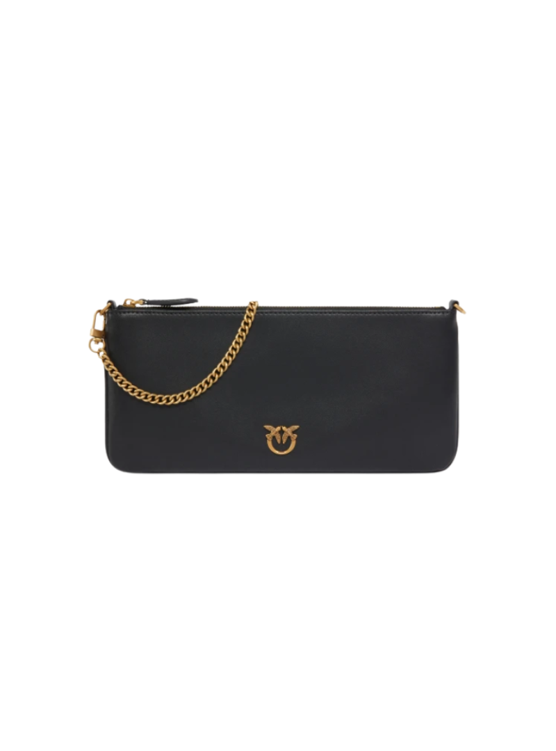 Materiale: Borsa a tracolla flat in morbida pelle mano setaLinea allungata Placchetta Love Birds Diamond Cut, galvanica antique goldInterno foderato in polycottonTracolla a catena sottileChiusura con zip100% pelle