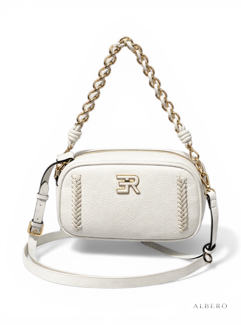 Materiale: Borsetta a spallaChiusura con zipManico fisso con catenaTracolla regolabileDettagli con intrecciLogo applicato in metallo